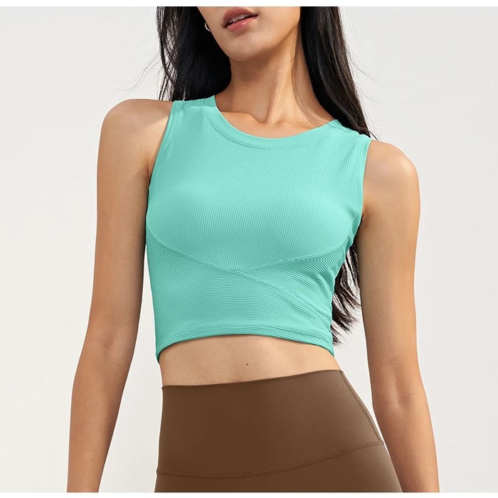 Special Waist Cross. High Neck For Added Coverage. Semi-Fixed Cups Provide Better Shock Absorption.High-elastic Ribbed Fabric. Classic Racerback Suit For Any Exercise
