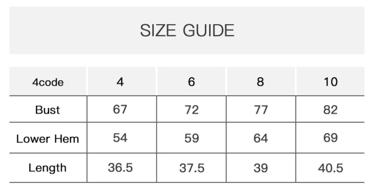 Size: 4, 6, 8, 10