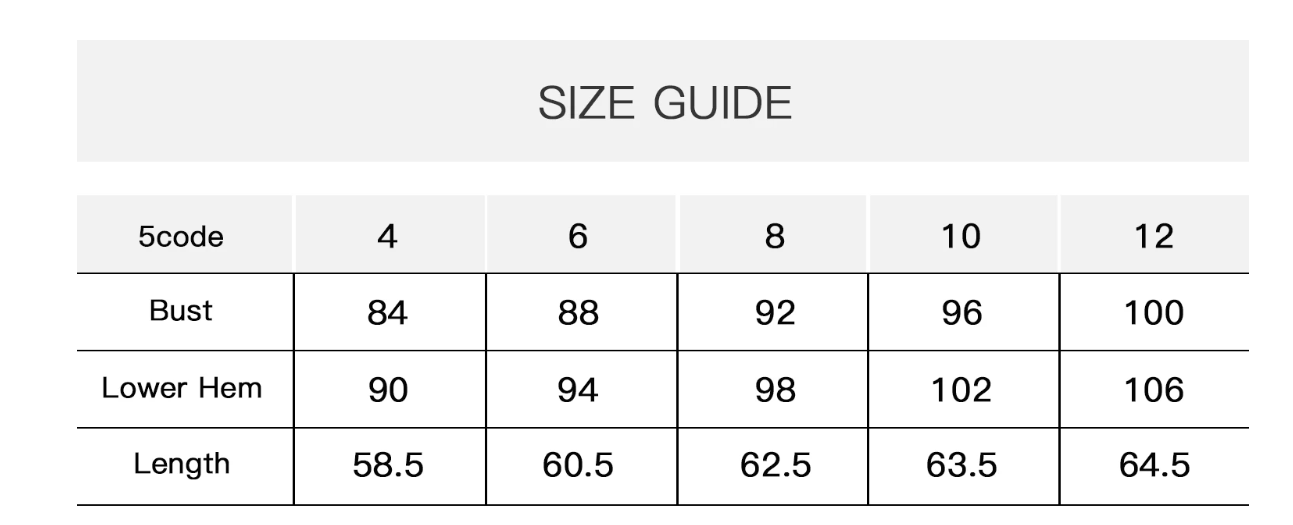 Size: 4, 6, 8, 10, 12