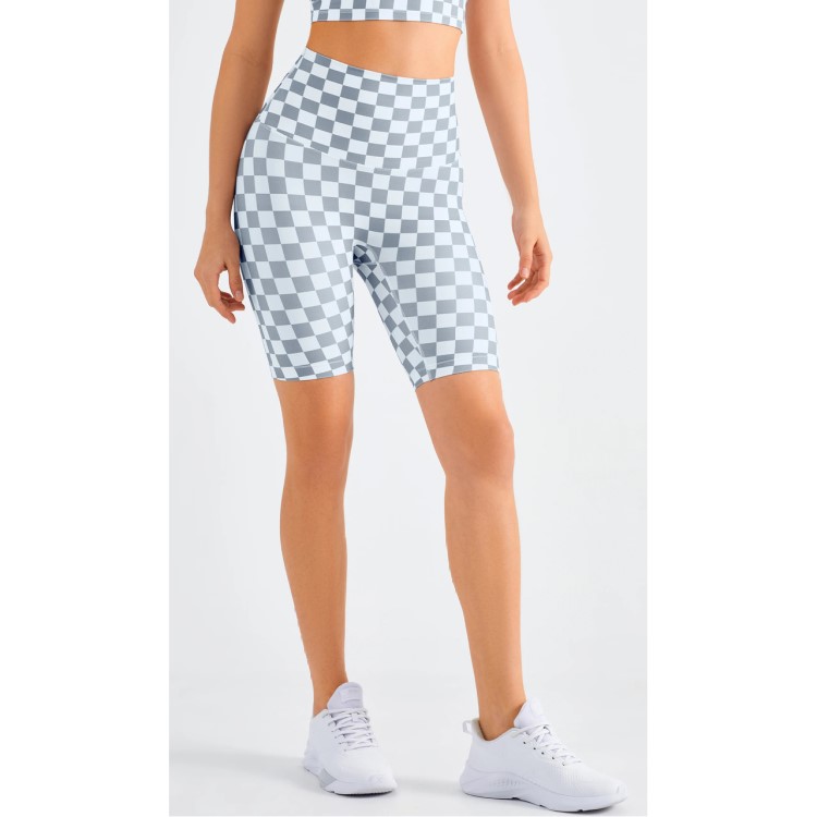 3Pcs Women Checkerboard Workout Legging High Waist Butt Lift Yoga Bike Shorts