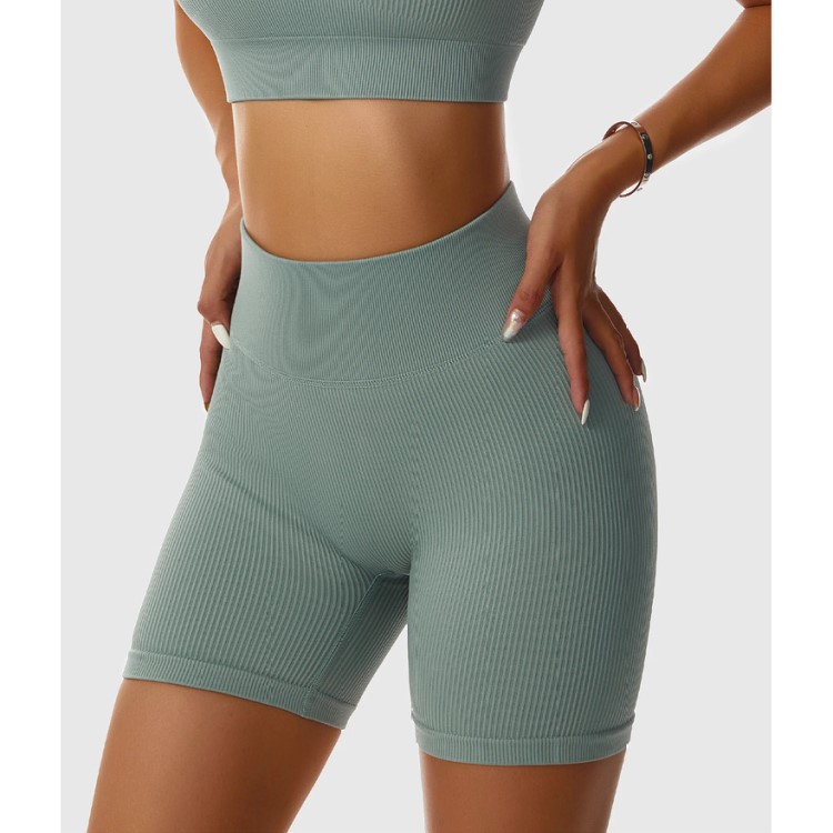 10Pcs Rib Gym Women High Waist Breathable Butt Lifting Yoga Shorts