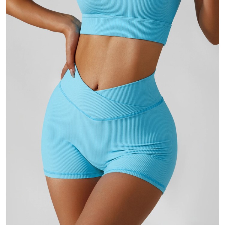 10Pcs Girls Sports Short Leggings Sexy Women Half Cross Waist Gym Shorts